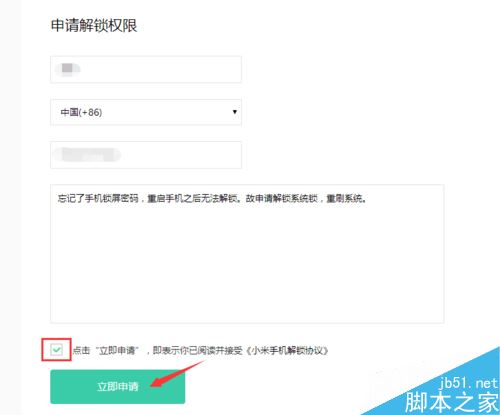之后登陆小米账号并提交解锁申请,在解锁申请的理由中可填写【忘记了手机锁屏密码,重启之后无法解锁。故申请解锁系统锁,重刷系统】,笔者当时是这么填的。