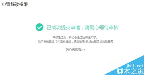 这个申请是10天内回复,笔者是提交申请之后立刻就收到了解锁申请通过的短信回复,应该是机器审核的。