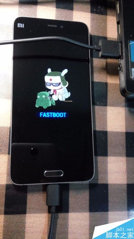 将小米5关机,之后同时按住音量下键和电源键进入【FastBoot】模式,将手机连接电脑。
