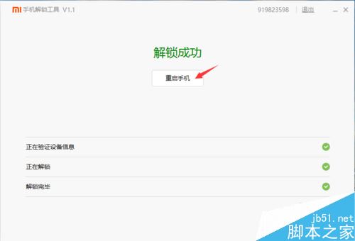 数秒之后会显示解锁成功。此过程可能不会顺利进行,如果解锁进行到一半就失败了,那么重启手机之后重试即可。