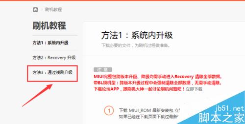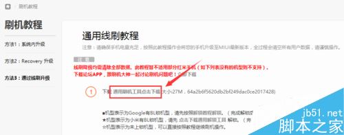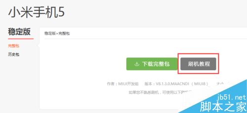 进入系统下载页面,在稳定版下面点【刷机教程】,不要点下载完整包,那个是卡刷包,不能用。
