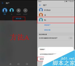 A.从状态栏向下滑动,点击用户图标,进入【 更多设置】,选择要删除的用户,然后点击【删除用户】> 【删除】。