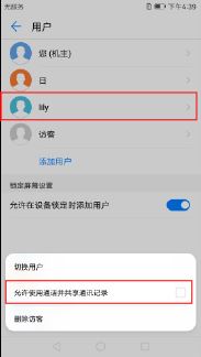 亲戚朋友借用手机时,难免会有共同的联系人,此时,您可以授权用户使用通讯录和通话记录。授权用户或访客使用通话以及共享通讯记录,您需要以机主身份登录。