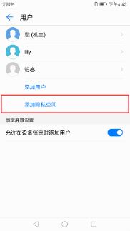 配置完成后,您可以在锁屏界面使用不同的指纹在隐私空间和主空间之间快速切换。(想要删除或退出隐私空间? 在隐私空间中,点击【设置 】> 【高级设置 】> 【用户】,然后点击删除图标。)