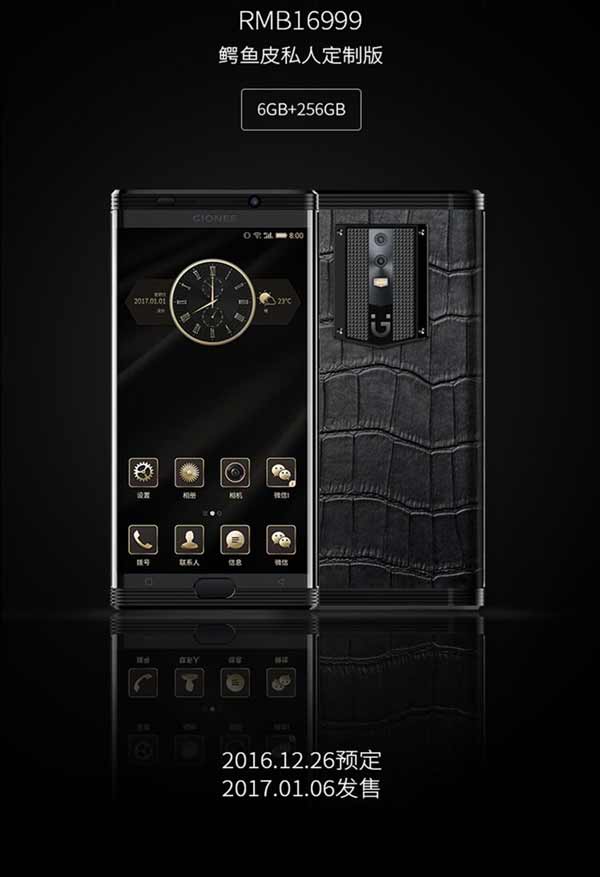 昨日晚间,金立正式发布了专为成功商务精英打造的旗舰手机“M2017”,冯小刚、徐帆倾情代言,6+128GB标准版售价6999元,6+256GB鳄鱼皮私人定制版价格高达16999元。