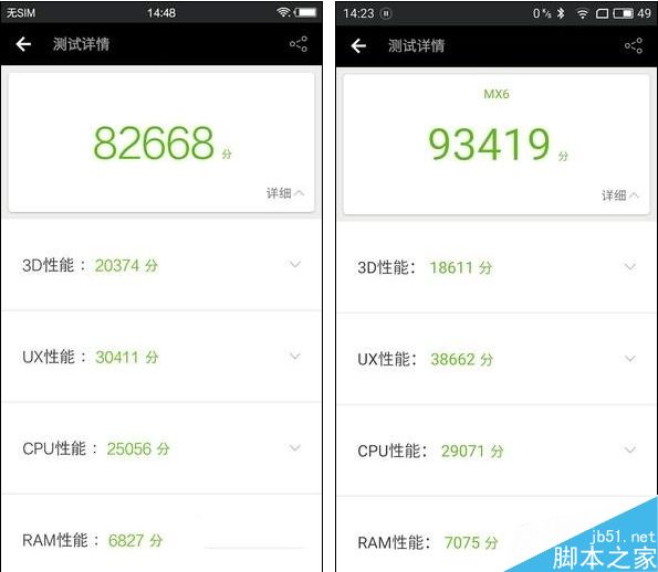 那么Helio X20和目前主流CPU相比,性能大概处于什么水平呢?根据对比发现,Helio X20的性能参数与骁龙652比较相近。跑分方面Helio X20机型达到93419分,十核全开确实人多力量大,相比骁龙652设备为82668分,高出1万分。