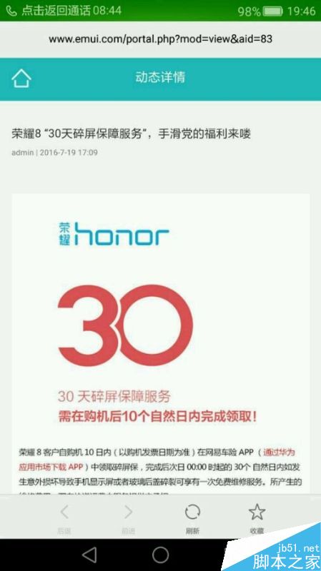 总结,按照上面的步骤可领取30天的荣耀8碎屏保险,但是毕竟只有30天,如果对于手机使用不是非常注意的朋友,还请去荣耀官方购买完整的碎屏保险。万一手机摔了,有保险的话换屏幕还是非常划算的。
