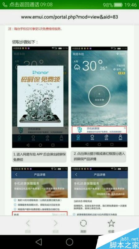 注:每台手机仅可享受1次免费维修服务。如果要领取的话,可以下载“网易车险”APP→点击首页弹窗或“发现”页提示图(带“碎屏保”字样)→按照页面提示填写信息→完成领取