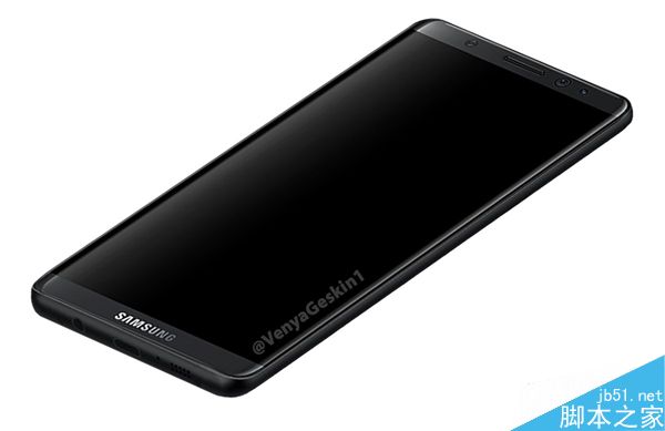 从图片上看,三星S8取消了实体Home键,传统的SAMSUNG Logo被移到了机身下部。屏幕依然是双曲面屏,顶部拥有虹膜扫描传感器。