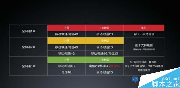 全网通1.0:对于双卡双待手机,电信的SIM卡只能放到卡槽1,这时卡槽2只能放联通/移动卡,并且只能使用2G接打电话,无法使用4G/3G网络。
