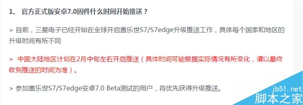 今天上午,三星官方在盖乐世社区宣布Galaxy S7/Edge的安卓7.0正式版系统推送将会在2月中旬开启,不过具体时间可能有所变化。三星表示,参加Beta版测试的用户将会优先收到正式版推送。