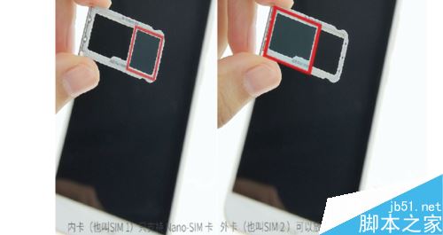 注意:小编提醒您,不可以直接将 Nano-SIM 卡、MicroSD 卡插入放置卡托的卡座中,或使用剪小的非标准 Nano-SIM 卡。即使是营业厅帮忙剪的卡也不行。这些原因引起的手机损坏是不可以免费维修的哦。