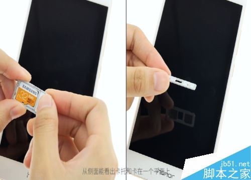 装好的卡托是平整的,从侧面看,卡托和卡是在一个平面上。
