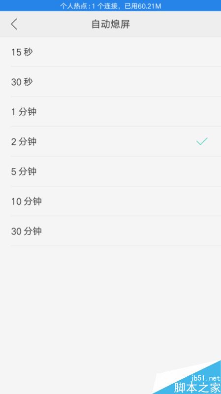 然后点击“自动息屏”,里面会有15秒、30秒、1分钟、2分钟、5分钟、10分钟、30分钟。选择一个合适的时间,然后点击一下,后面出现一个对勾就成功了。