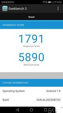 在试玩游戏之前,还是先用几款主流的跑分软件测试一下这款手机的整体性能。虽然跑分软件不能代表手机的整体性能和使用体验,不过还是具有一定的参考性的。笔者分别采用了安兔兔、3DMark及Geekbench进行了测试,其中安兔兔的跑分达到了11万的高分,在手机性能排行榜上也是名列前茅,而在Geekbench中单核的性能达到了1791分,多核的分数为5890分。3DMark中Ice Storm测试场景下分数为13375,整体性能还算中规中矩。