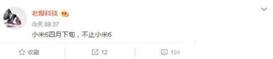 根据微博爆料人士@老爆科技 的博文,小米的下一代旗舰——小米6即将在四月下旬发布,也就是说小米6的亮相将在一个多月以后。届时,小米将在发布会上一同展示另外一款新品。结合之前的信息,该机很有可能是小米6 Plus,毕竟现在的双旗舰套路很流行。