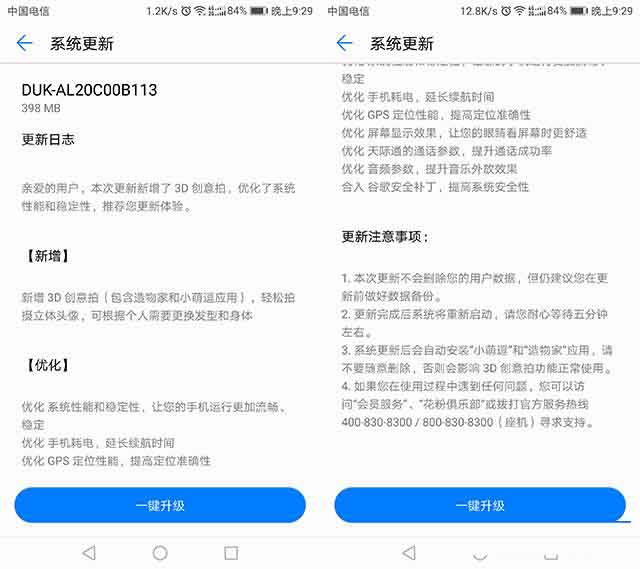 这次荣耀V9固件“B113”的主要更新内容如下: