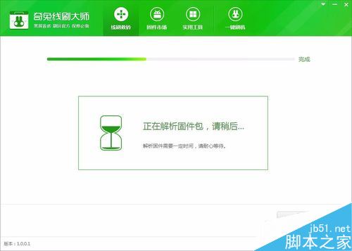 在“固件市场”选择合适的固件包,点击下载相对应机型线刷包。下载完成后软件会对固件包进行解析,这里千万不要断开数据线,避免出现刷机错误。