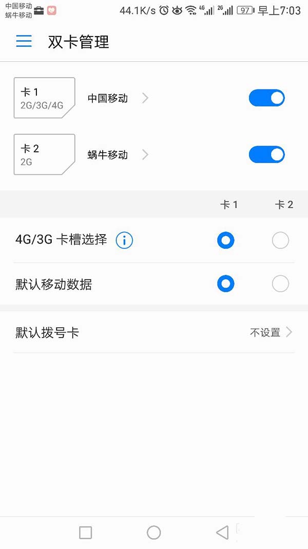 6、现在可以看到已经安装了两个卡,一个是移动一个是网路电话卡,