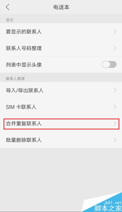 2、点击【合并重复联系人】,将“QQPIM客服”合并成一个即可。