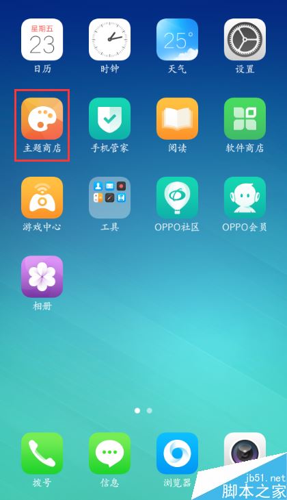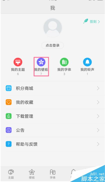 1、想设置自带的壁纸,可以通过点击桌面的【主题商店】--【我】--【我的主题】进入。