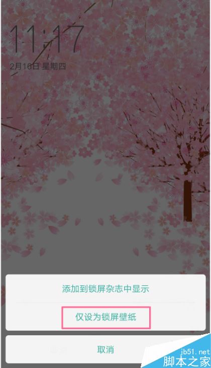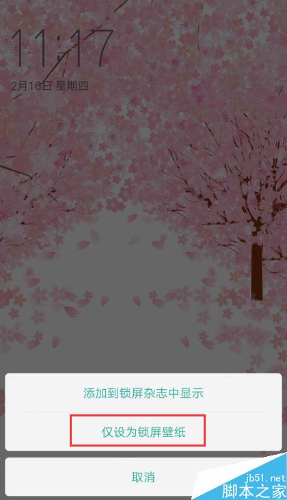 2、然后将其【设为锁屏壁纸】--【仅设为锁屏壁纸】。