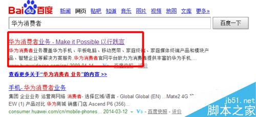 百度搜索华为消费者。第一个搜索结果就是,然后点击进入消费者业务。也可以直接进入华为消费者官网。http://consumer.huawei.com/cn/