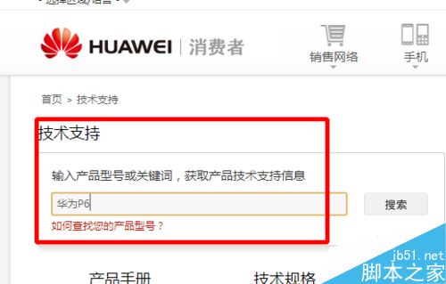 我们在搜索栏输入我们要找的官方固件的手机型号,比如华为P6.