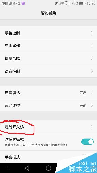 进入智能辅助界面后需要往下滑动屏幕,找到定时开关机,如图所示;