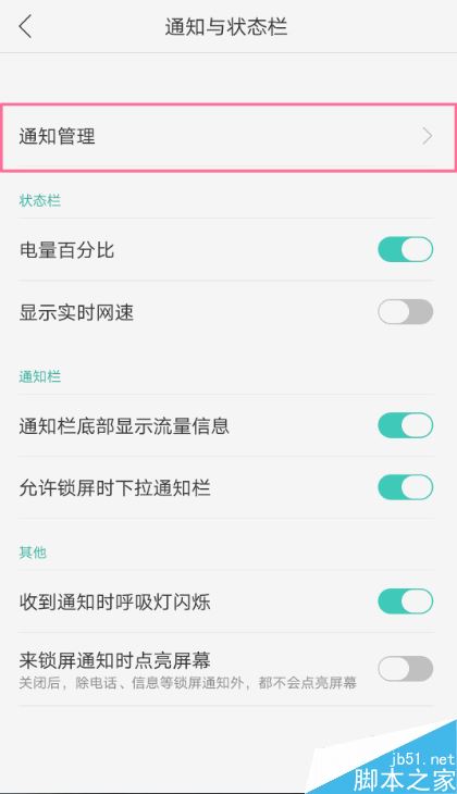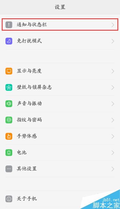 通过点击桌面的【设置】--进入【通知与状态栏】。