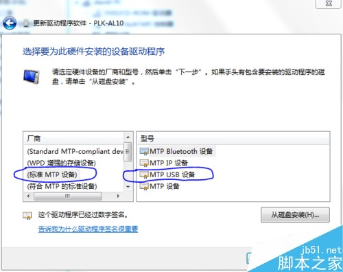 然后在弹出的列表中依次选中(标准MTP设备)—>MTP USB设备。然后单击“下一步”。在弹出的警告窗口中选择“是”。