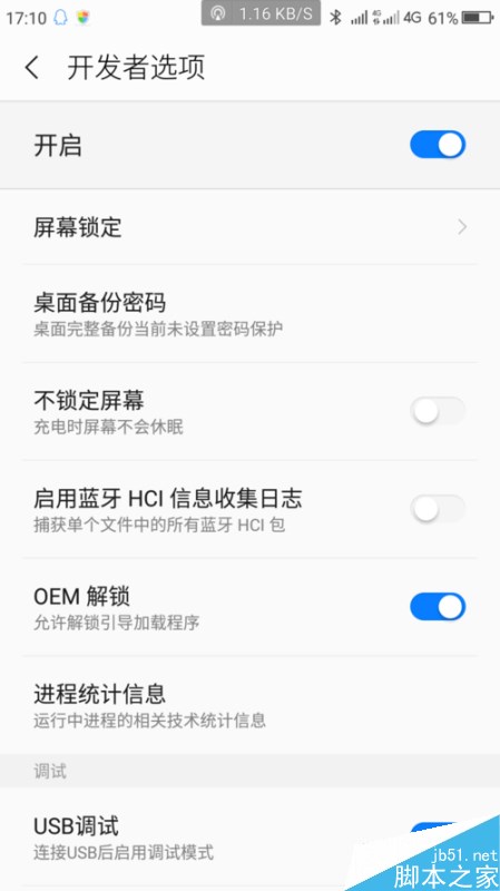 如果手机需要连接电脑记着把usb调试打开,OEM是解锁手机,root使用需要打开。