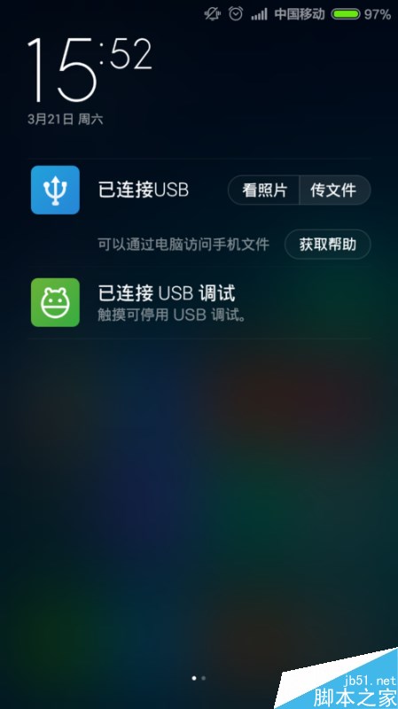 遇到这种情况的时候,大家打开自己手机,查看连接状态,然后有一个“已连接USB调试”,如果确认自己打开了USB调试功能的话,点击该选项。