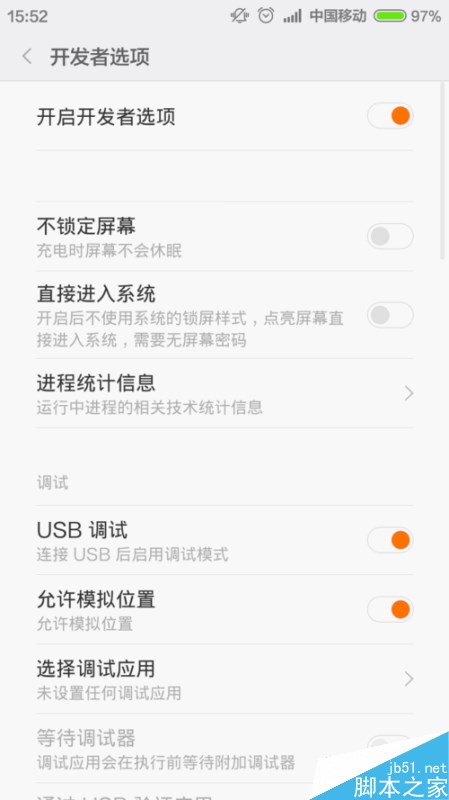 接下来,触摸该选项设置,然后将打开开发者选项功能设置页面,我们点击会看到自己已经开启了开发者选项功能,我们点击将该功能关闭。