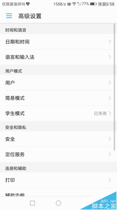 2、往下滑动设置菜单,找到高级设置,点击进入“高级设置”