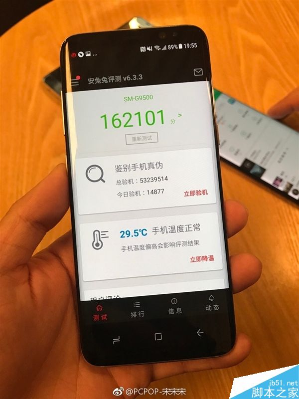 其中安兔兔162101分,内建的骁龙835处理器最高主频2.36GHz。