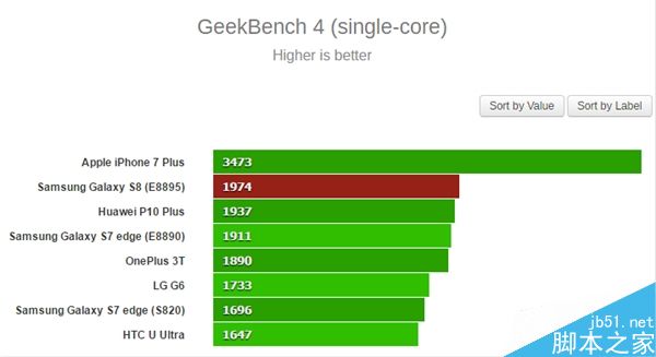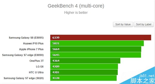 再看Yugatech送上的国际版SM-G950F(Exynos 8895处理器)的跑分: