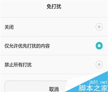 四,在中间的那个选项里有“仅允许被打扰优先级”中可以设置定时开启,即到了设定时间自动开启免打扰