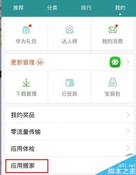 打开后不用登记,直接拉到底下,找到“应用搬家”: