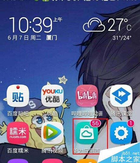 首先在手机桌面上,找到“应用市场”图标,然后点击打开: