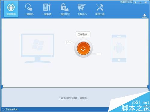 接下来我们需要借助第三方ROOT工具实现获取vivo手机ROOT权限操作。本文使用“完美刷机”工具来获取,可自行选择第三方ROOT工具。vivo手机连接电脑后,将自动识别并完成手机驱动的安装操作。
