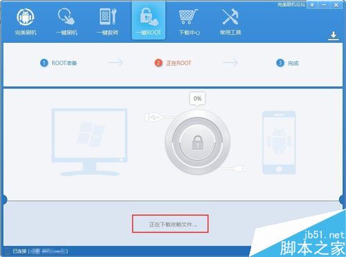 此时完美刷机将自动从远程服务器上下载相关ROOT解决方案以及与ROOT相关的依赖文件。