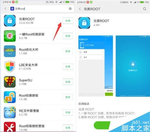 此外,我们还可以借助手机APP实现获取vivo手机ROOT权限。直接在手机端“应用商店”中搜索“完美ROOT”工具并安装。