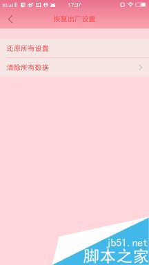 点击“恢复出厂设置”以后,下面列示两栏:还原所有设置和清除所有数据。