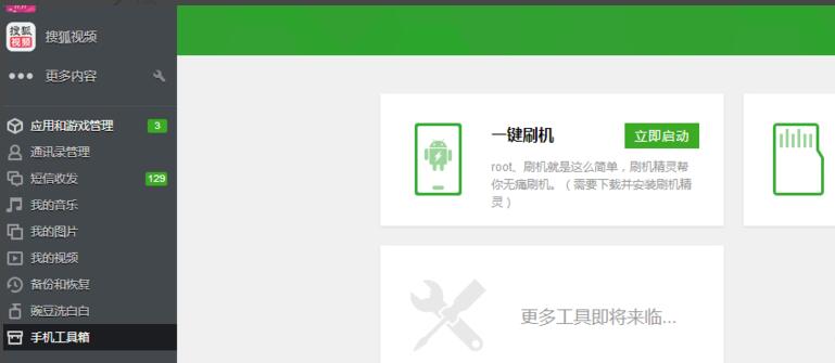 左侧找到手机工具栏,点击进入以后可以看到一键刷机功能,点击进入