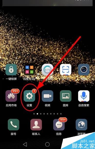 首先回到手机的桌面,点击桌面上的的设置,点击打开。