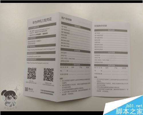 三包凭证:打开手机包装盒,找到随机附带的三包凭证,查看“真伪鉴别提示”相关内容。