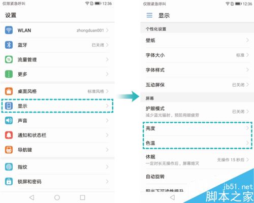 大家在使用手机时,如果发现屏幕显示效果不理想,可点击【设置】>【显示】,并分别对亮度和色温进行设置。