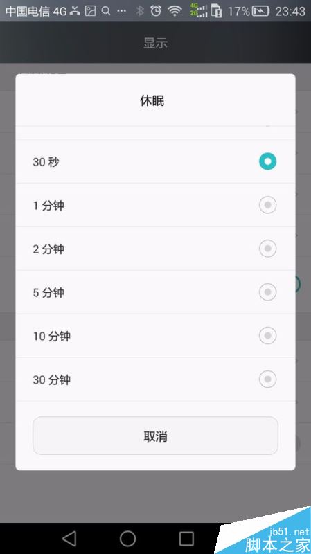 用户点击之后,可以看到目前手机的休眠是30秒,也就是说只要你的手机不进行操作30秒后就会进行锁屏。