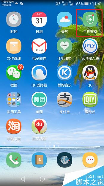 第一步打开我们的手机,找到“手机管家”,点击进去,如下图所示: